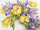 Yellow Tulips with Blue Iris