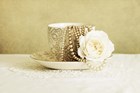Antique Cup and Saucer with White Flower and Pearls