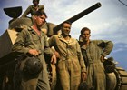 Tank Crew leaning on M-4 tank, Ft. Knox, KY