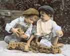Sharon Forbes is a photographer whose hand-tinted imaginative photographs mirror many of the wistful images of her own childhood, a time when she played dress-up in exotic dance costumes belonging to her aunt, and attended a small country school. She liked art from a tender age and kept her creative drive alive while working in real estate and as a hair stylist. In an effort to find work that would allow her more time with her family, she decided to explored photography. Sharon has developed a style of hand-tinted black-and-white photographs that magnificently expresses the spontaneity and joy of animals and children. The artist carefully creates each setting; most of the times she uses costumes or takes interior furnishings out to casual outdoor settings. With a lot of patience, she photographs the subject and then tints each portrait by hand.