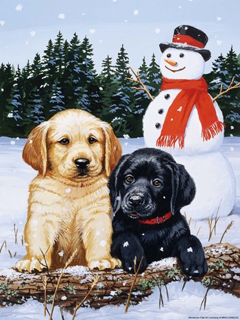 Lab Puppies With Snowman