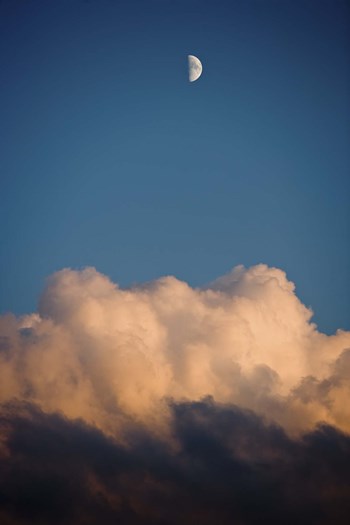 Half moon rise over Cumulus clouds