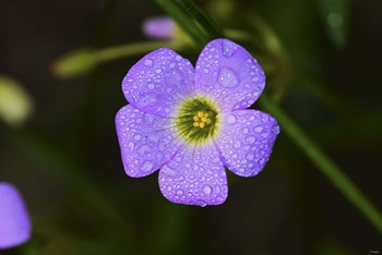 Purple Flower And Green Center And Dew