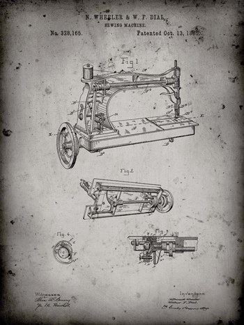 Sewing Machine Patent - Faded Grey
