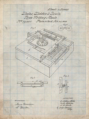 Type Writing Machine Patent - Antique Grid Parchment
