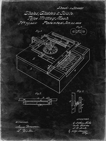 Type Writing Machine Patent - Black Grunge