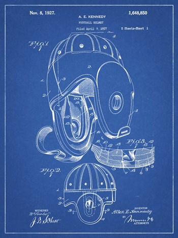 Blueprint Football Leather Helmet 1927 Patent