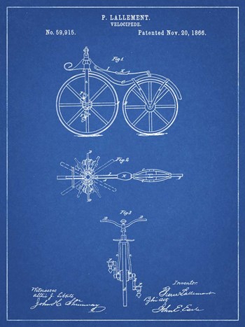Blueprint First Bicycle 1866 Patent