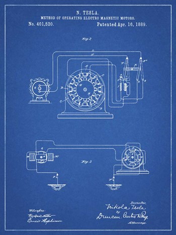 Blueprint Tesla Operating Electric Motors Map Patent